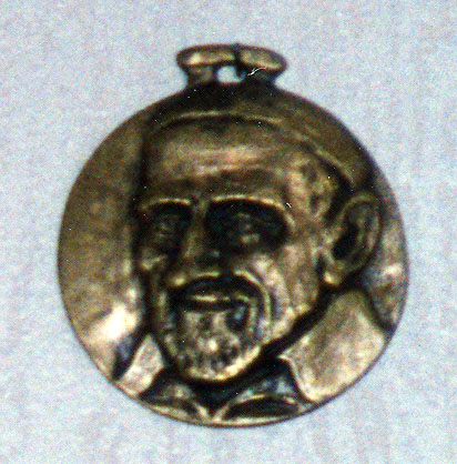 Round bronze medal with loop; head of Vincent de Paul, with skullcap; German manufacture