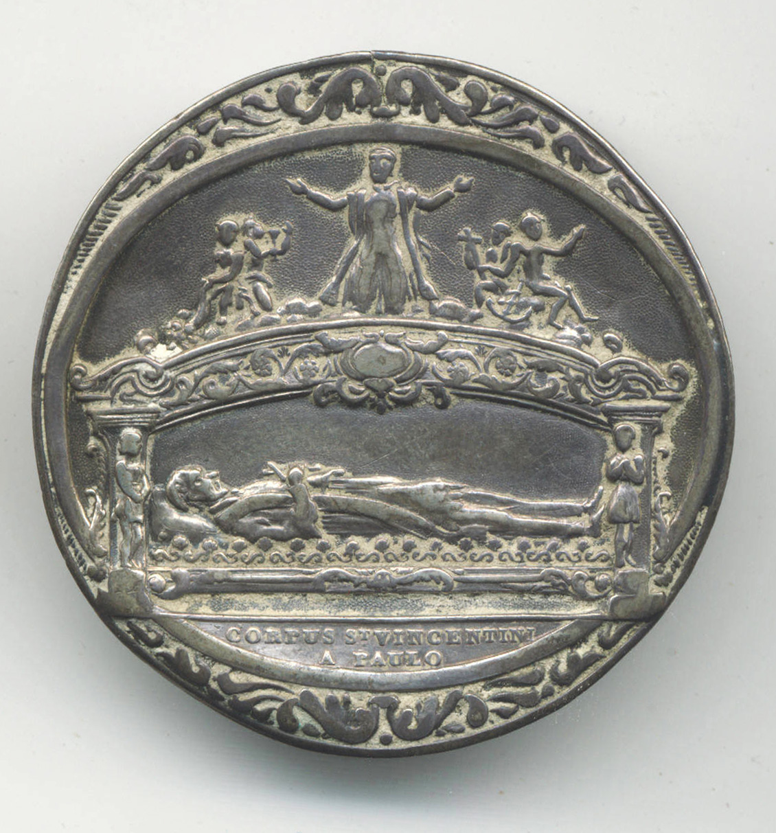 Embossed white metal; name misspelled (Vincentini for Vincentii); original in archives, St. Joseph Provincial House, repr. with permission