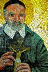 Mosaic, Vincent de Paul, cassock, mantle, skullcap, holding crucifix; internet image; location of original unknown