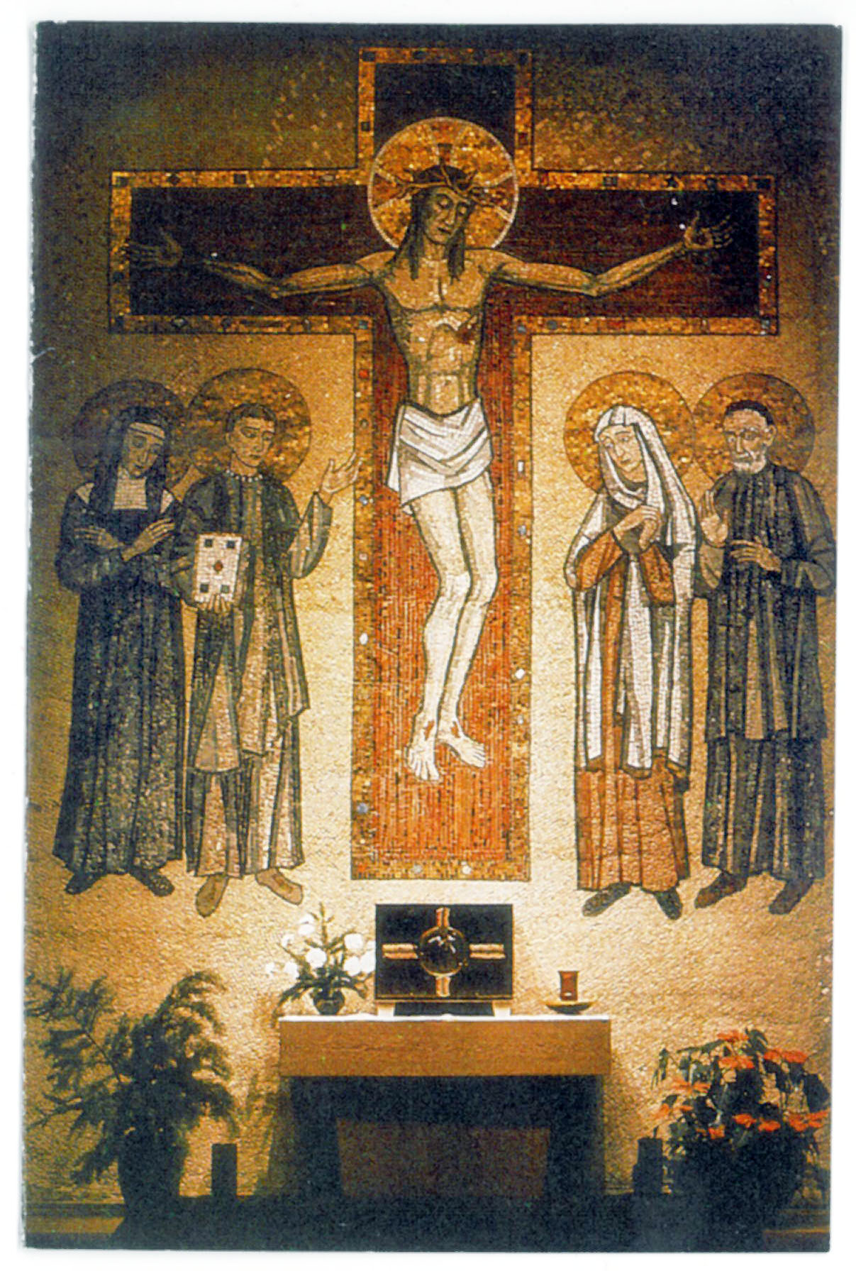 Vincent de Paul, Louise de Marillac, two saints, flanking crucifix