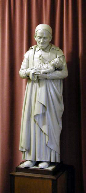 Plaster statue, Vincent de Paul holding a child in his arms; original in Netherlands