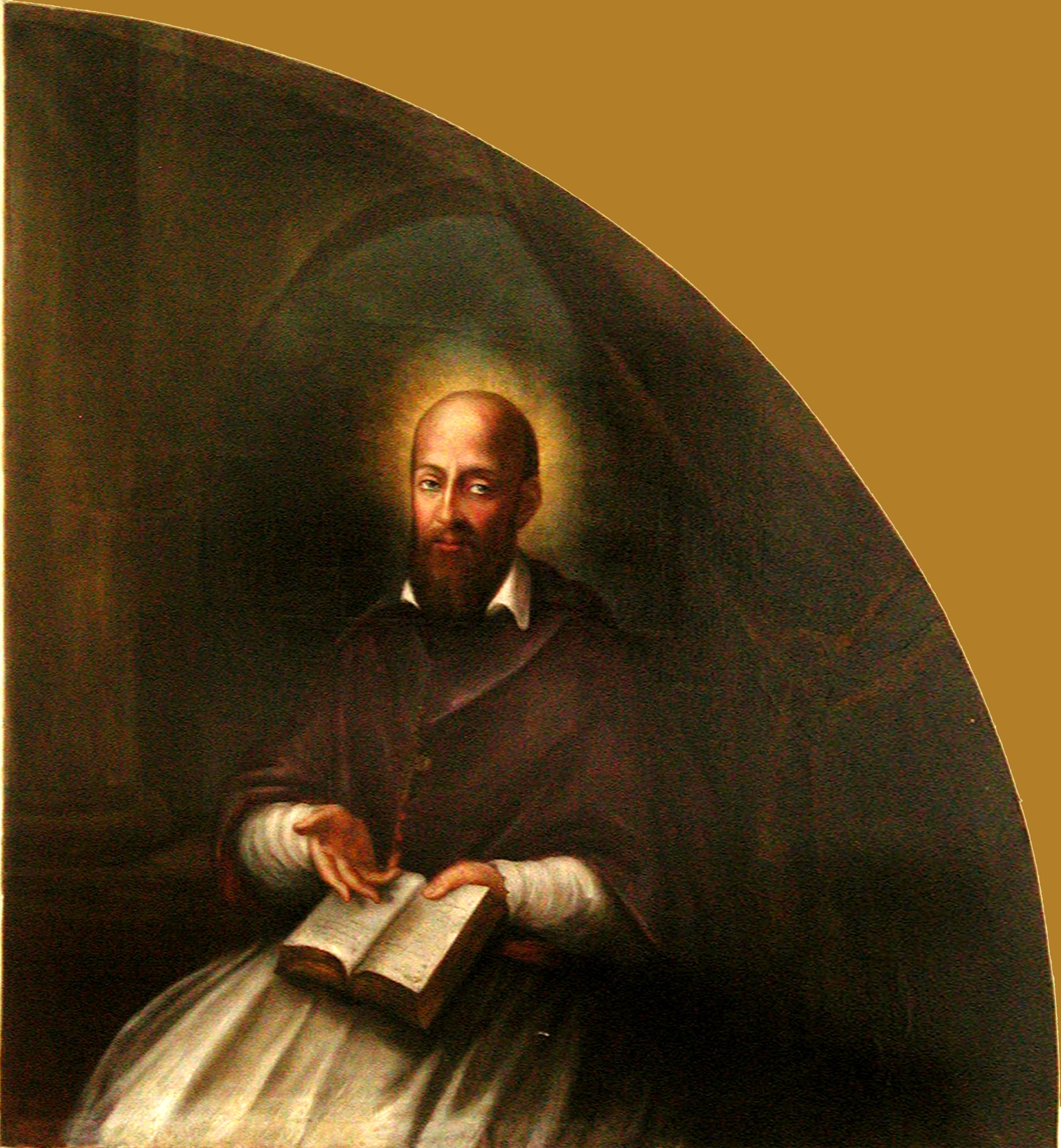 Oil on canvas; Francis de Sales, seated, with book; right panel with Vincent de Paul; original in Daughters of Charity mother house