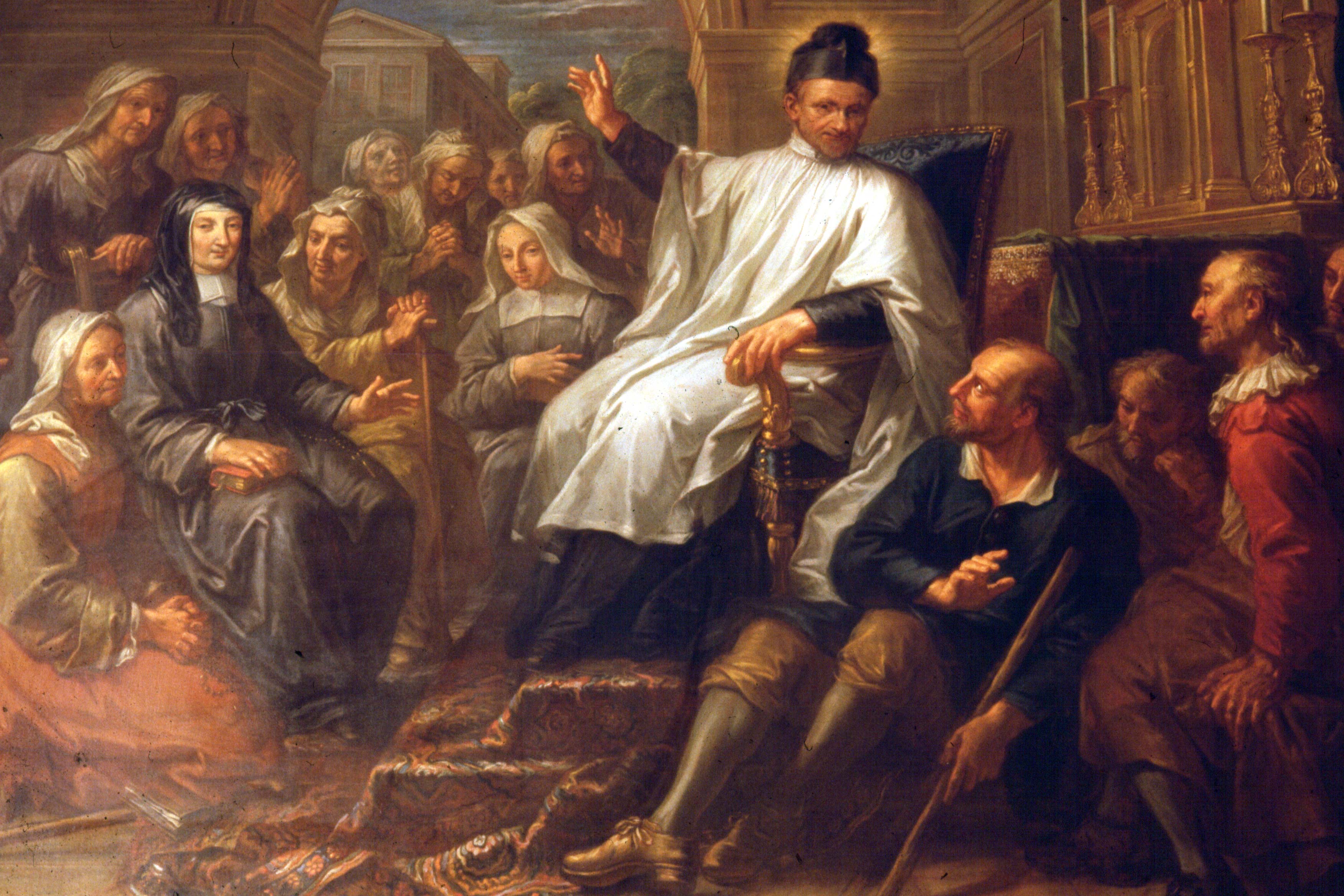 Vincent de Paul catechizing elderly poor at Nom de Jesus hospice