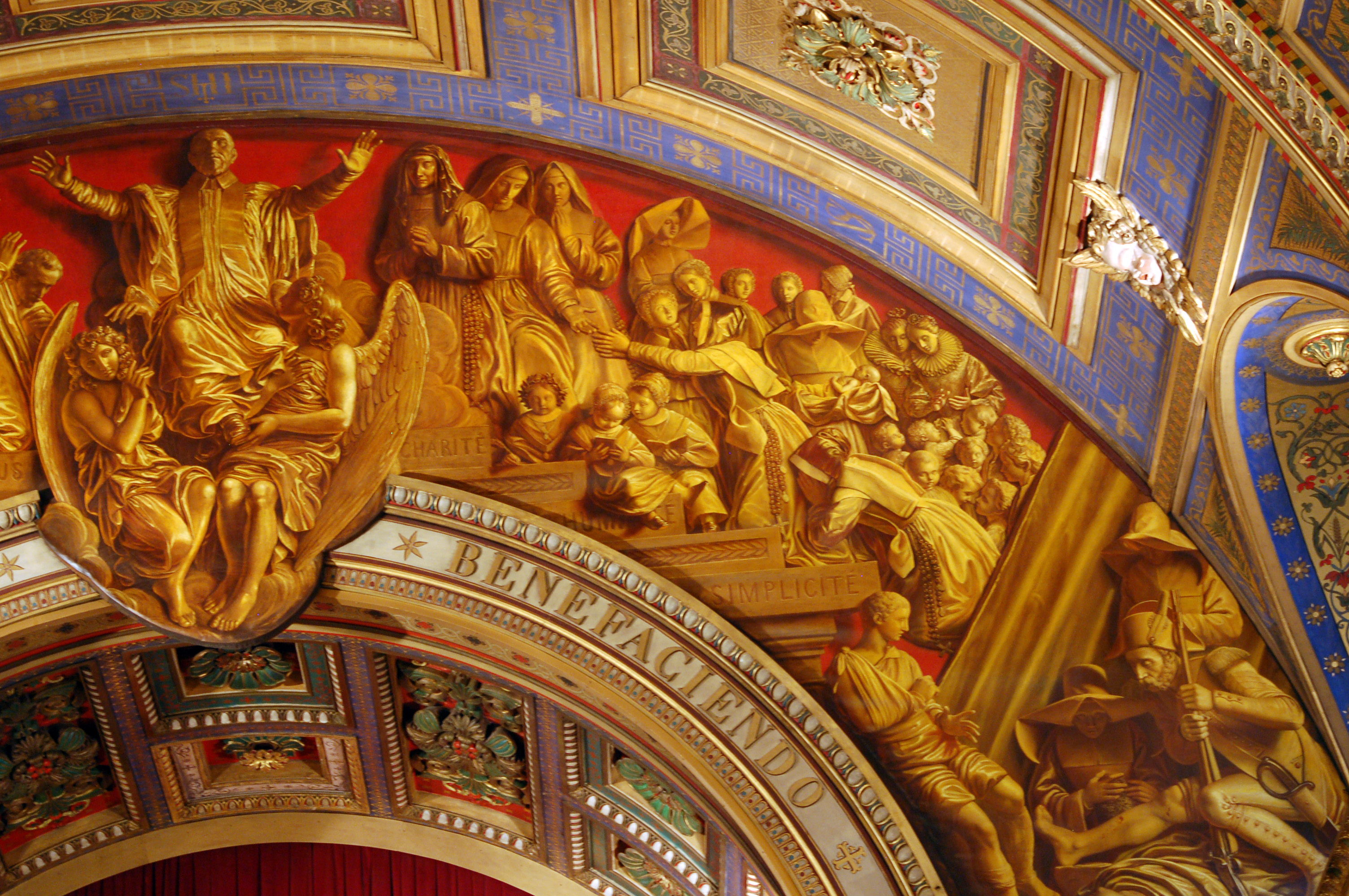 Vincent in glory, with Daughters of Charity, Ladies of Charity, virtues
