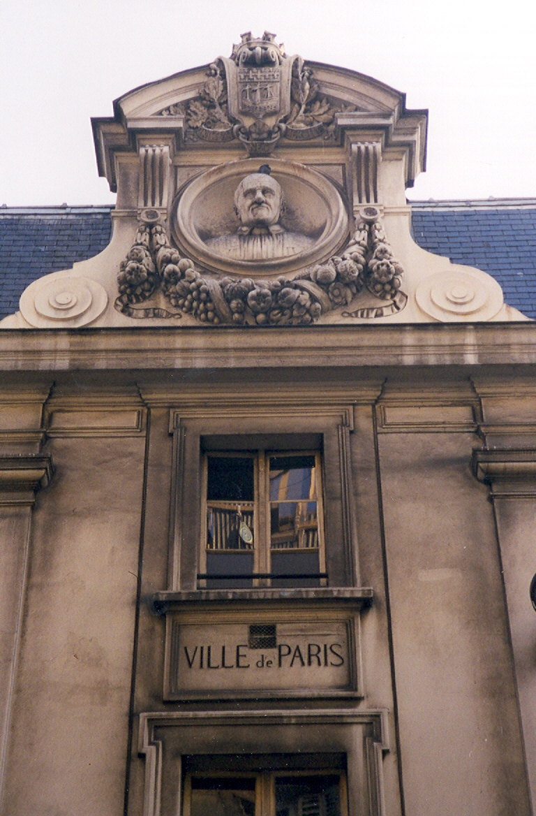 Vincent de Paul bust, school facade