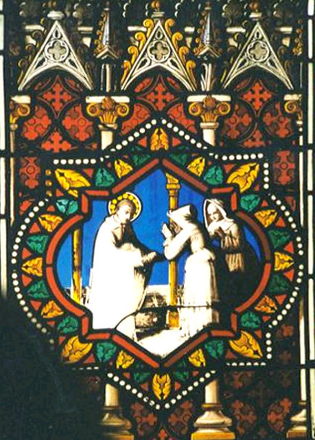 Vincent de Paul gives foundling to two Sisters. Original in chapel of Sisters of Bon Secours, Paris.