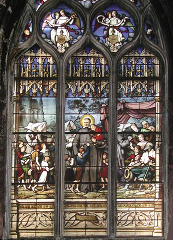 Vincent de Paul, with Daughters of Charity, orphans, poor; facade of St. Severin; original in parish, St. Severin