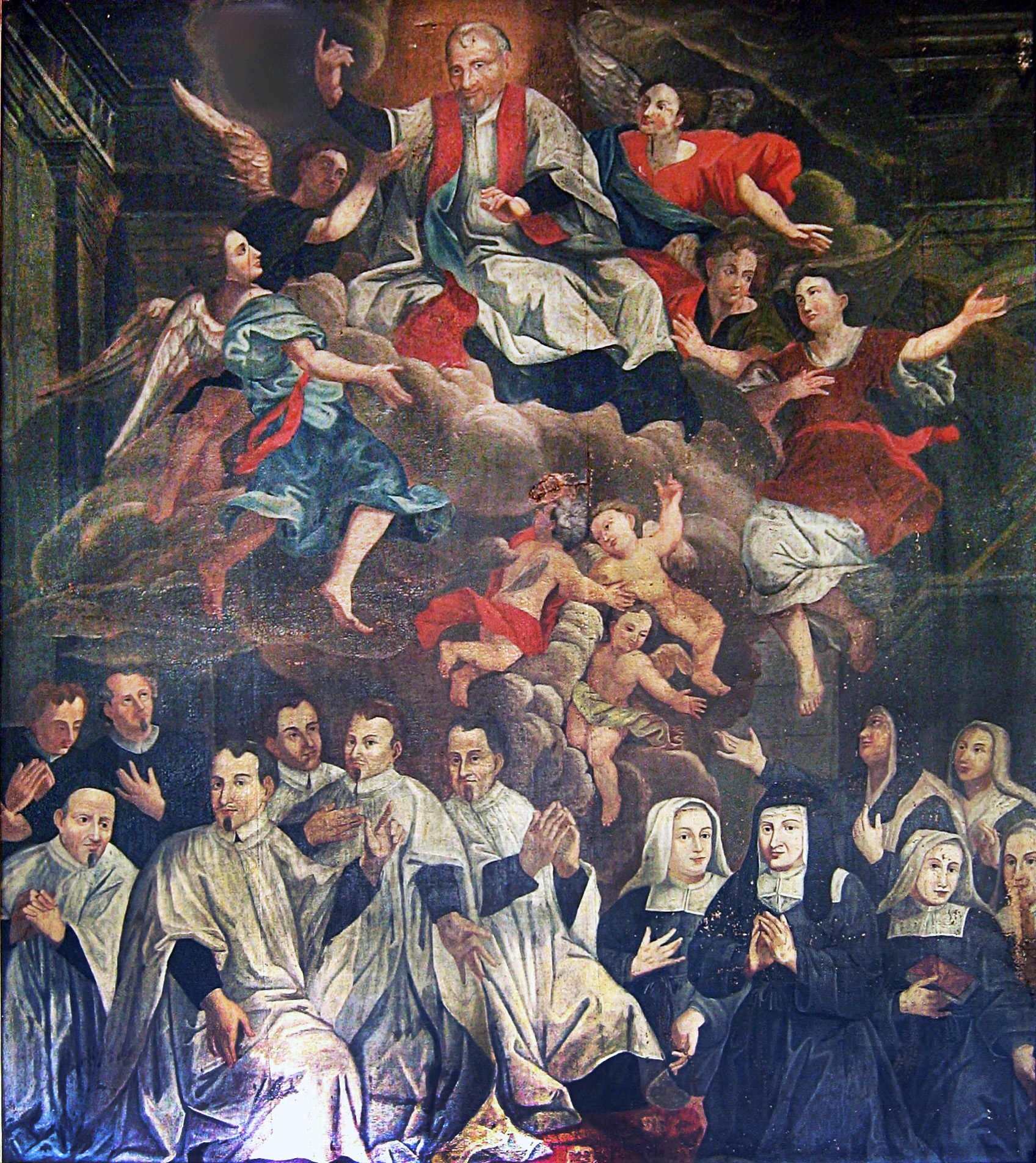 Based on canonization series, with Louise de Marillac, Sisters; and superiors general; original in Bourg-la-Reine parish church, France