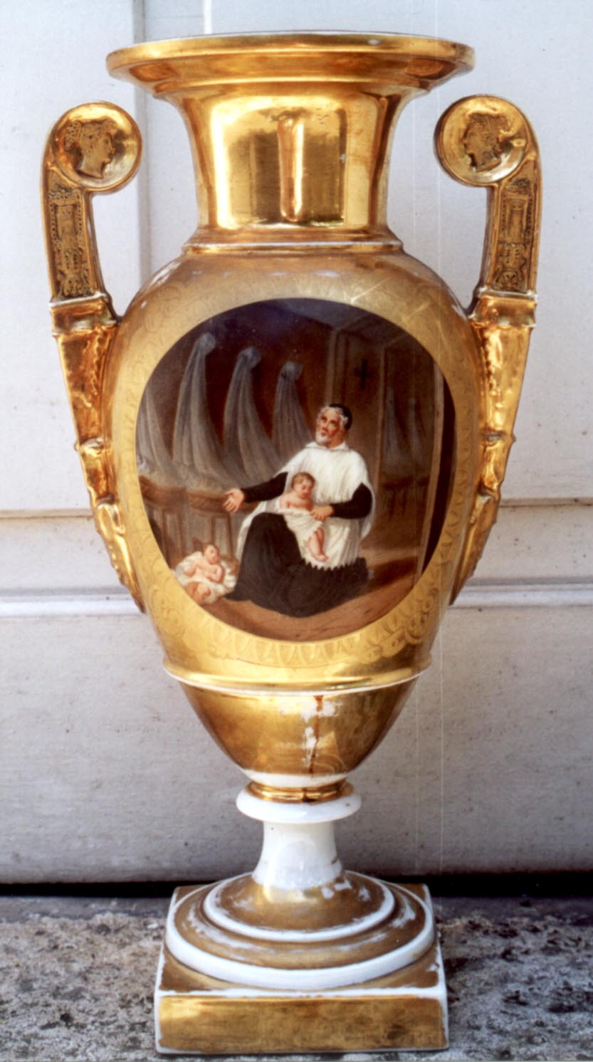 Sèvres painted and gilded porcelain vase; Vincent de Paul with foundlings. Location: Vincentian province of Paris.