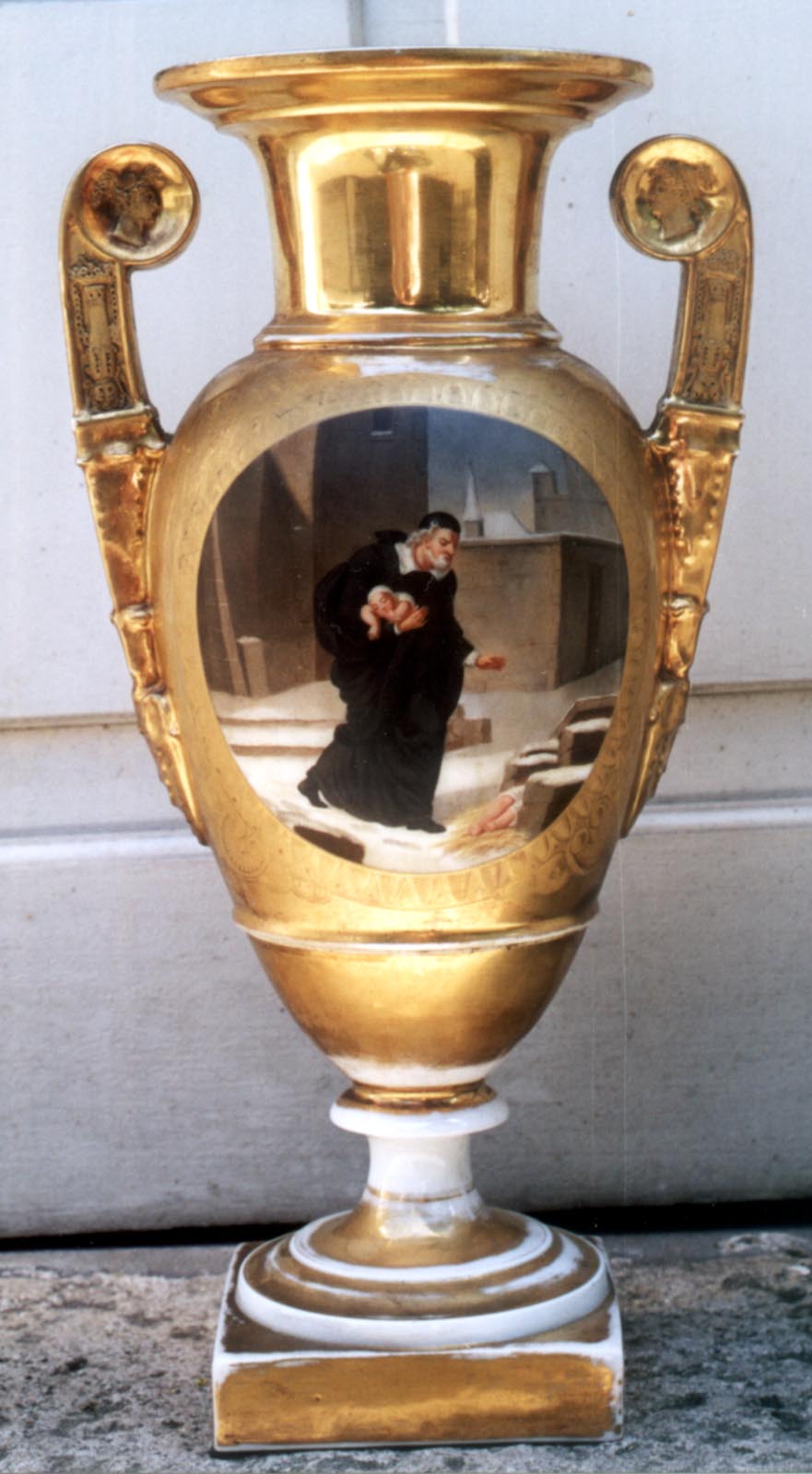 Gilded vase, Vincent de Paul with foundlings
