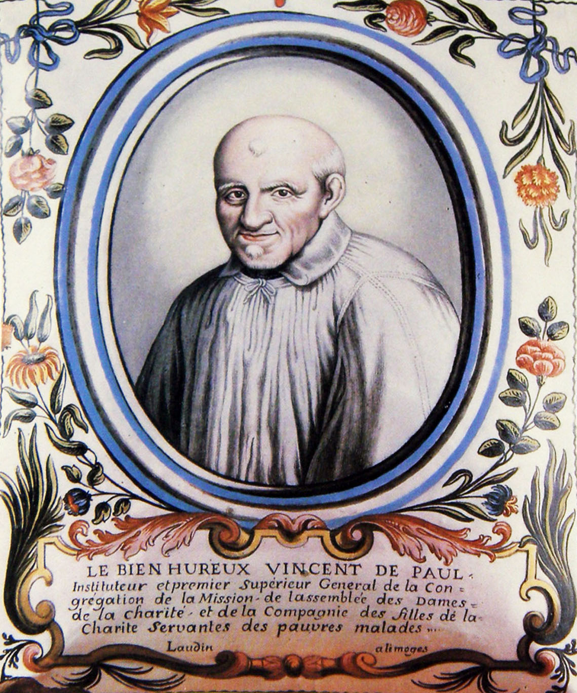 Oval portrait with inscription; Blessed Vincent de Paul (hence before 1737); original in Collegio Alberoni, Piacenza; artist: Nicolas Laudin the younger, Limoges