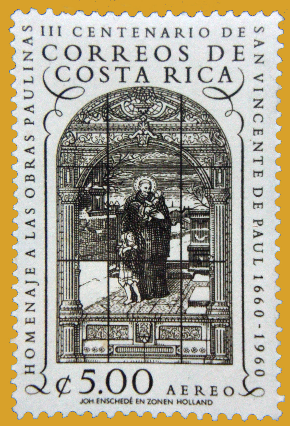 Tercentenary of death of Vincent de Paul, 1960; window from cathedral of San José, Costa Rica; engraver: Joh. Enschedé and Sons, Holland