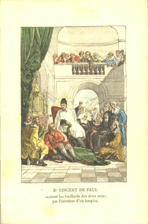 Text: SVdP assists the elderly of both sexes through the establishment of a hospice Based on a painting in the canonization series