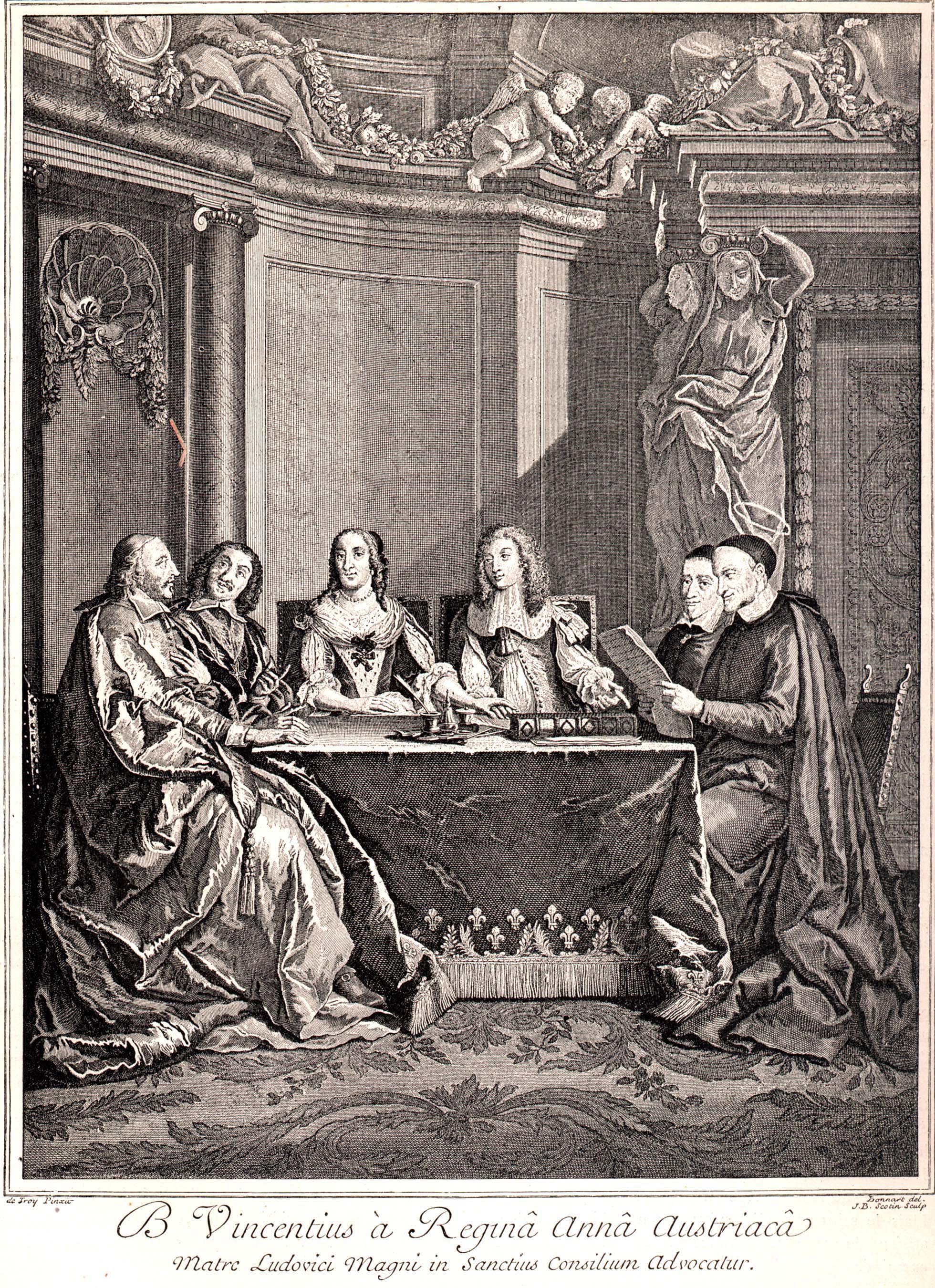 Blessed Vincent de Paul, with members of Council of Conscience; artist, De Troy