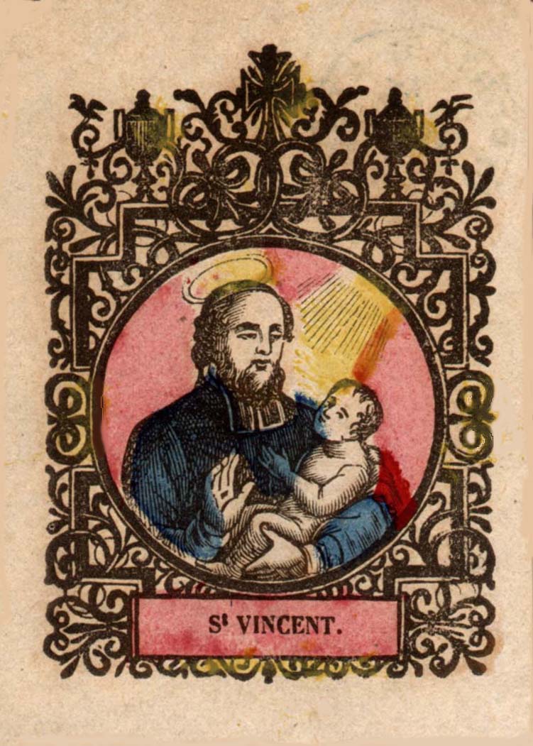 Vincent de Paul, collar of diocesan clergy, heavenly light; hand colored; original in Vincentian motherhouse, Paris