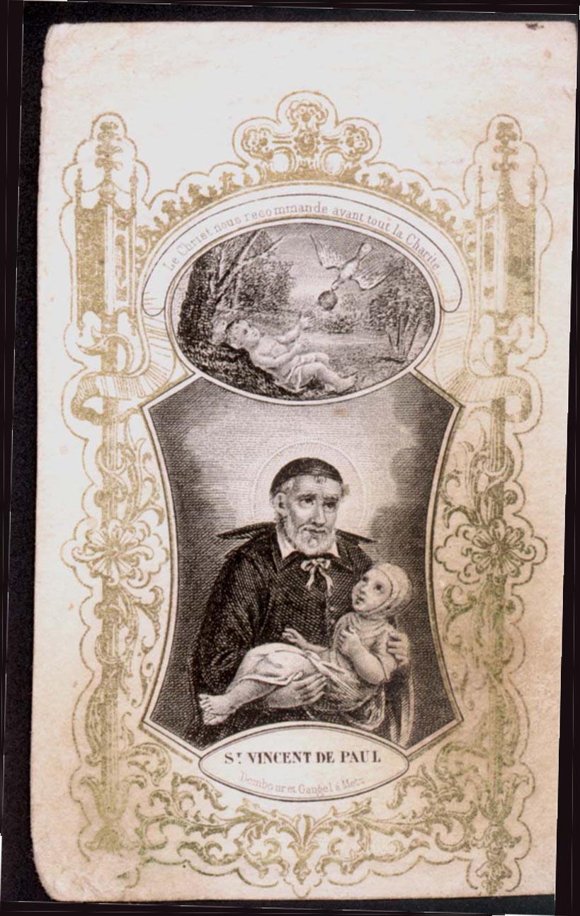 Vincent de Paul with child; printed at Metz