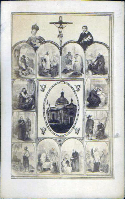 Scenes from his life, chapel of Berceau in center; Our Lady of Buglose, top left; internet image