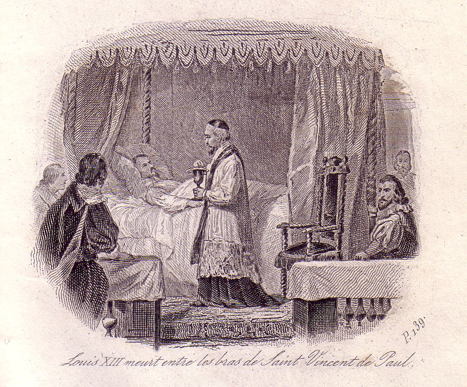 Text: Louis XIII dies in the arms of SVdP. Based on the canonization series.