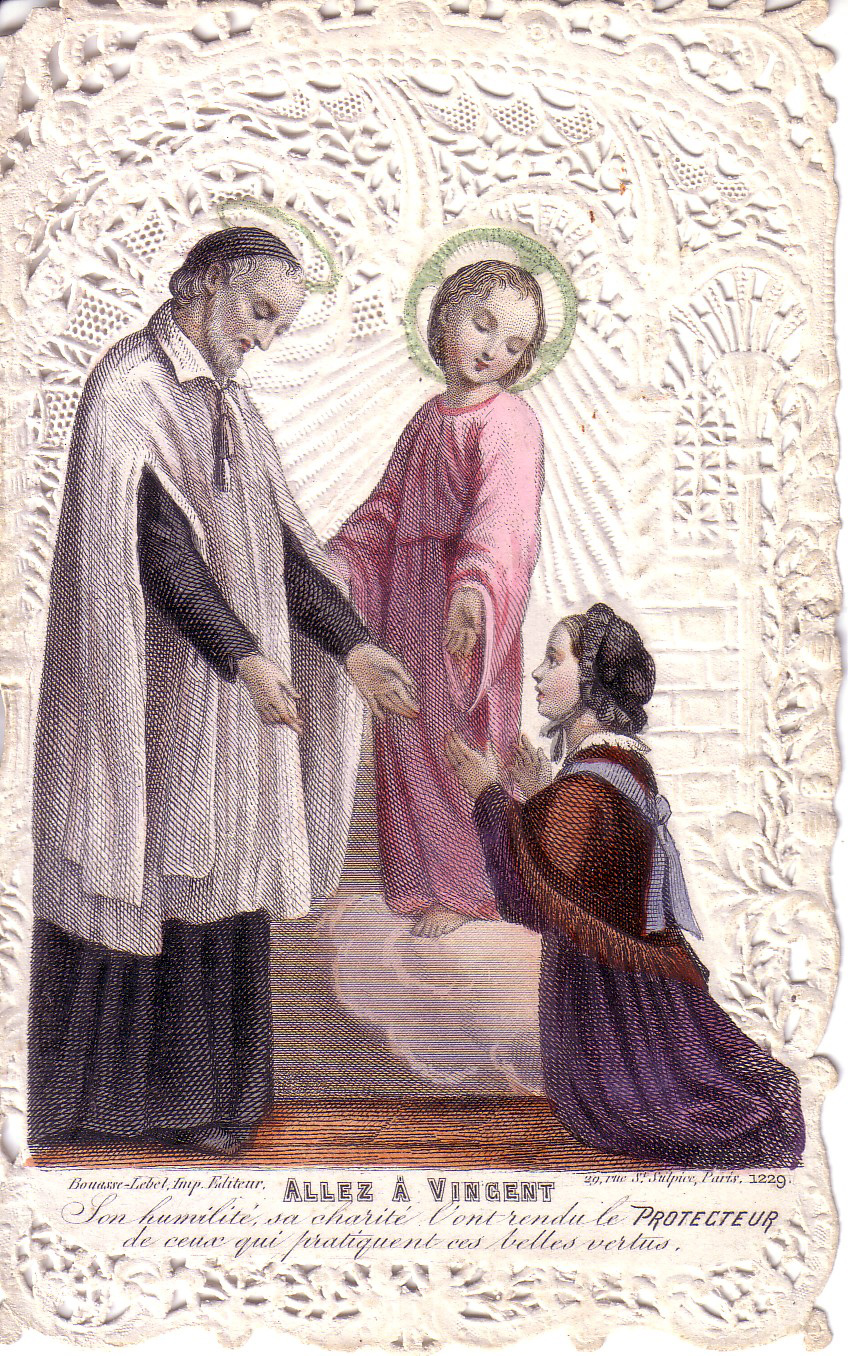 Text: Go to Vincent. His humility and charity have made him the protector of those who practice these lovely virtues