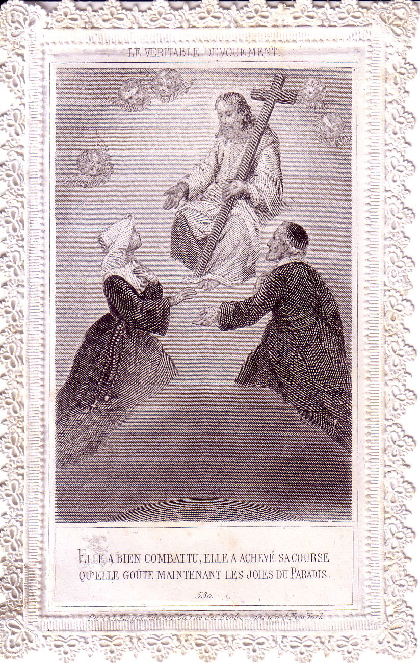 Text: She fought the good fight, she finished her course; may she now taste the joys of paradise.