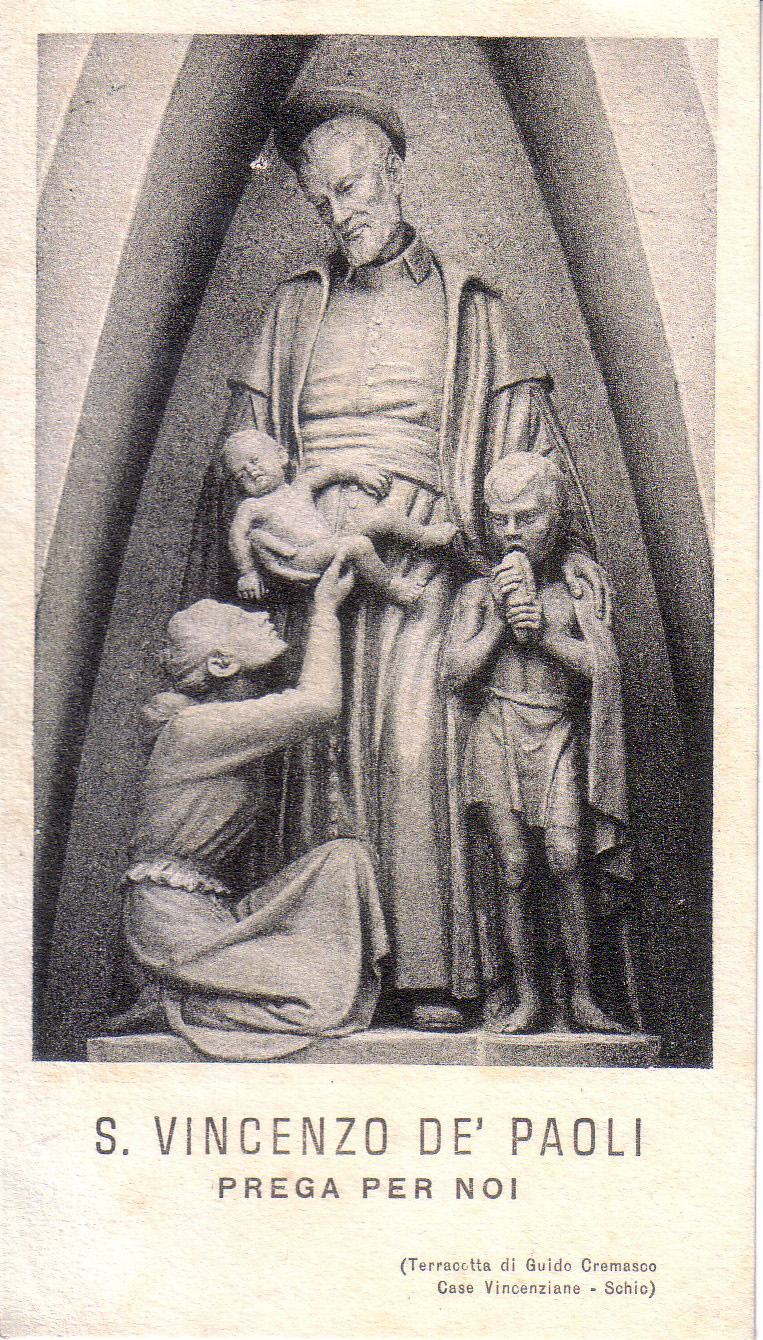 Vincent de Paul, mother and child, boy eating bread