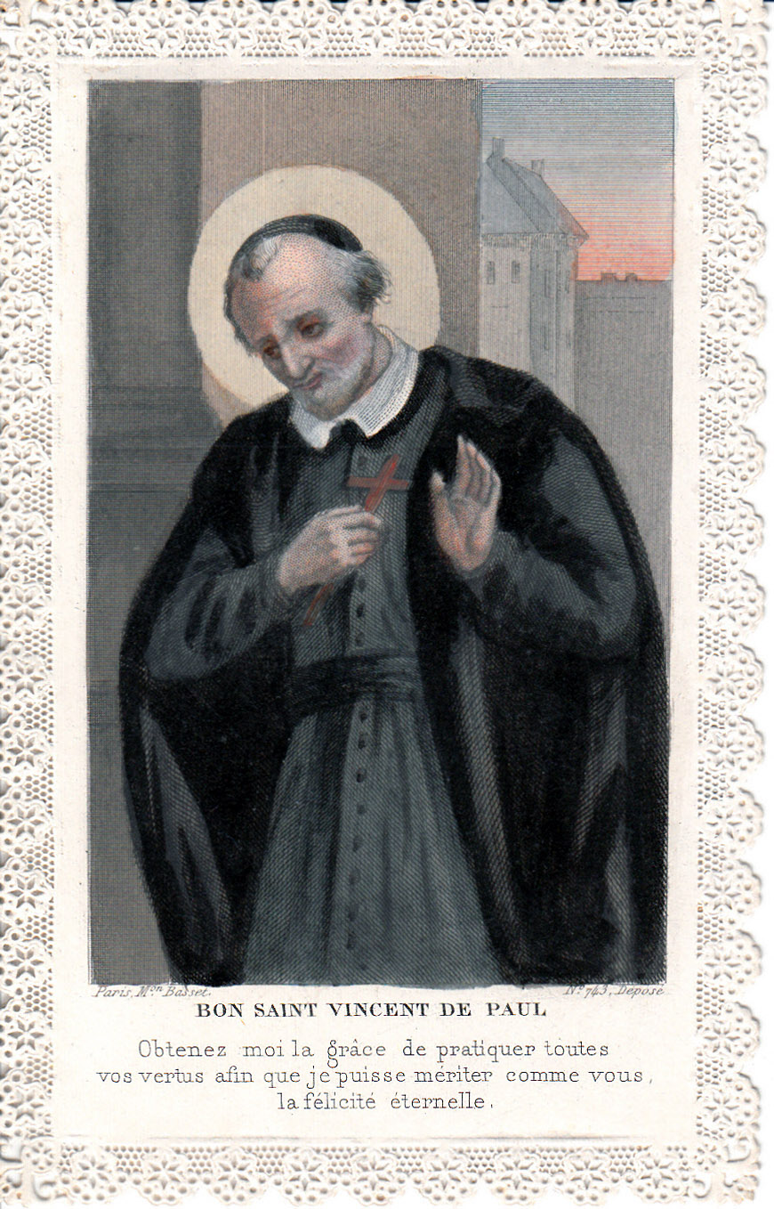 Text: Good St. Vincent de Paul. Obtain for me the grace of practicing all your virtues so that I might merit, like you, eternal happiness.