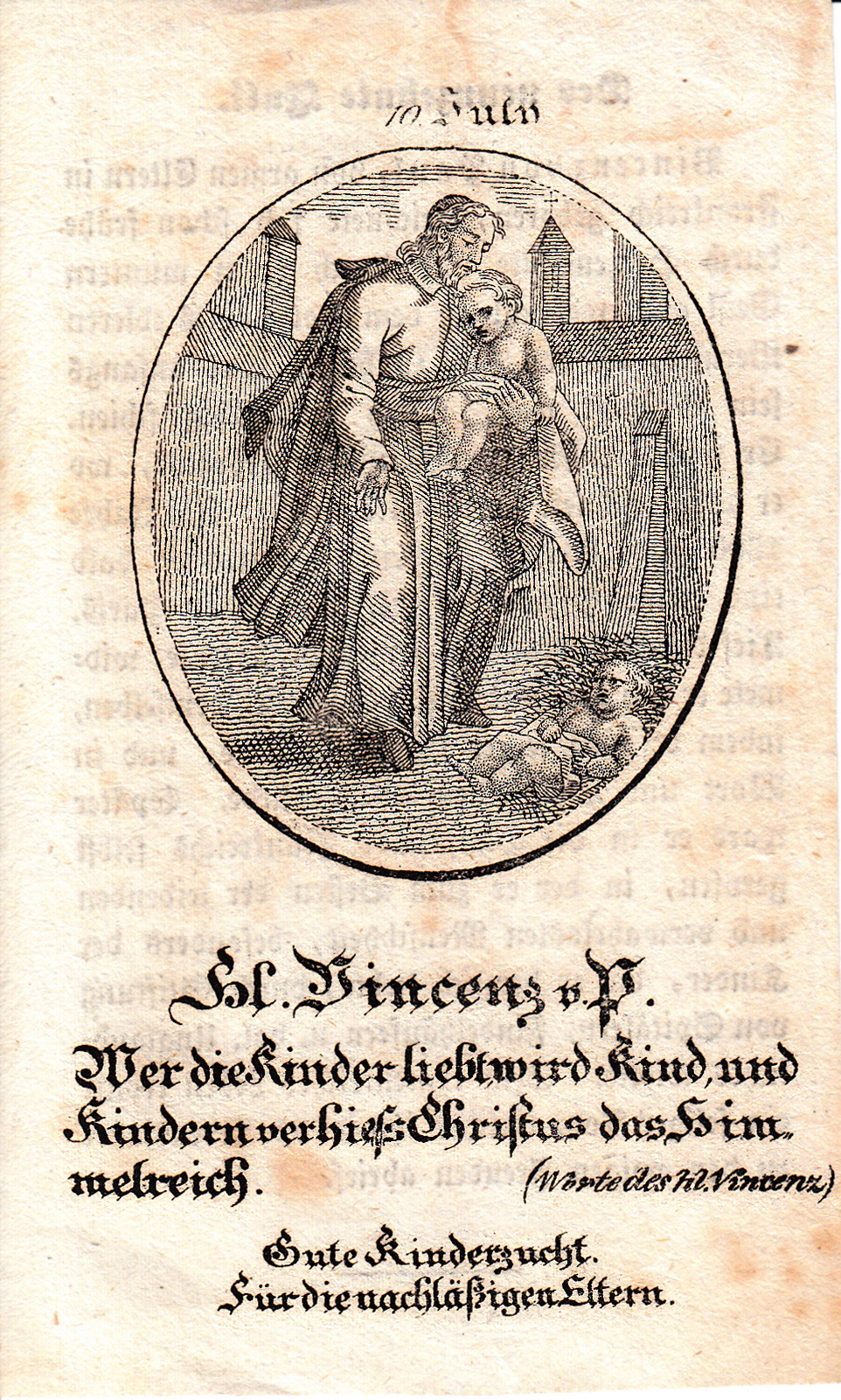 Text: He who loves children becomes a child, and Christ promised the Kingdom of Heaven to children. Good child raising. For negligent parents. Based on Monsiau painting