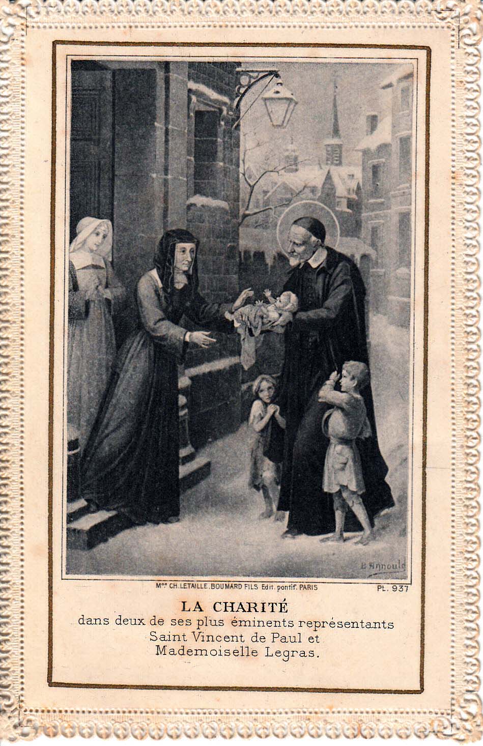 Text: Charity, in two of its most eminent representatives, SVdP, Mademoiselle Legras [shown without halo]