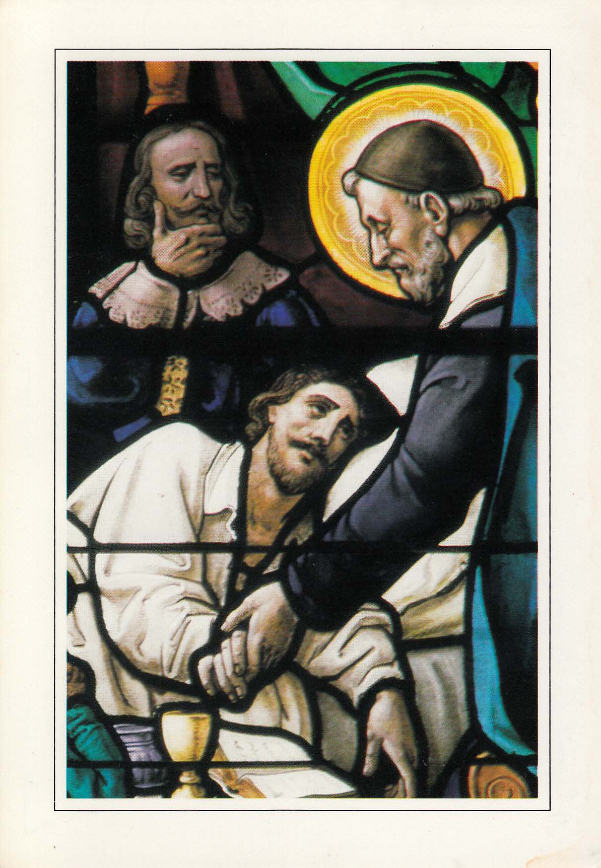 Portion of a window: Vincent de Paul at deathbed of Louis XIII
