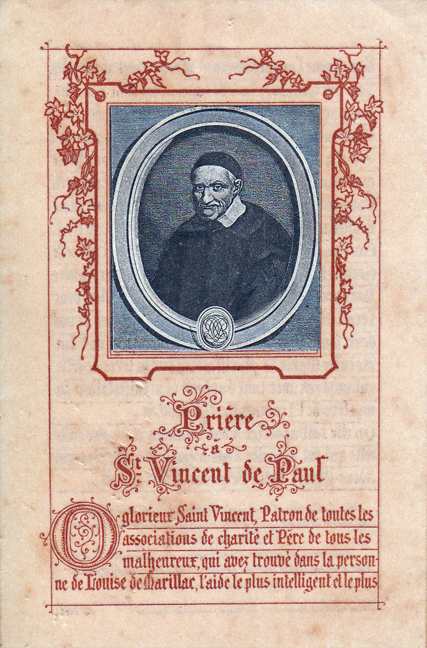With beginning of prayer "O glorious St. Vincent..."