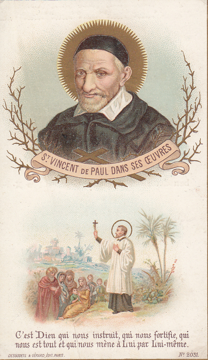 Text: (Above) SVdP in his works (Below) It is God who teaches us, who strengthens us, who is everything for us, and who brings us to him through himself.