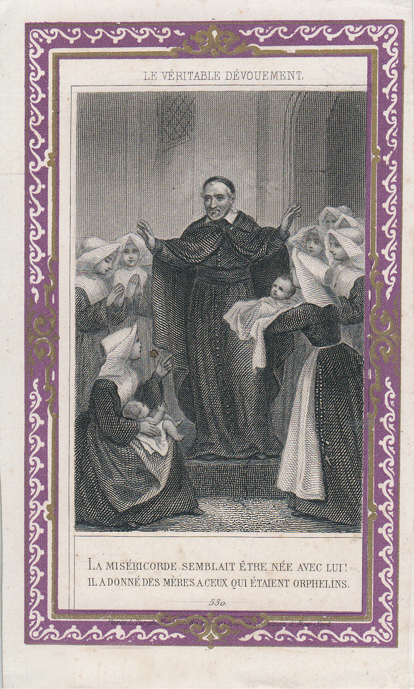 Text: (Above) True devotion (Below) Mercy seemed born with him. He have mothers to those who were orphans.
