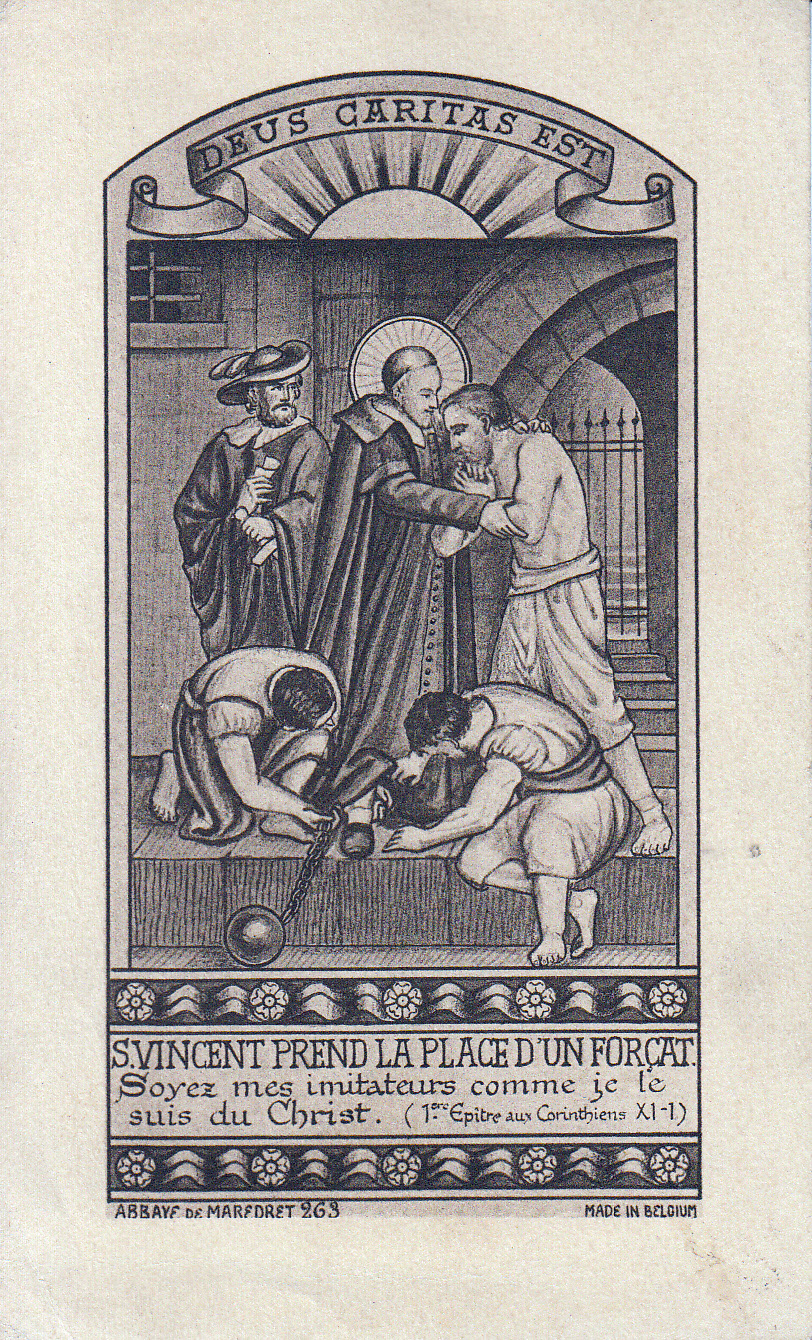 Text: (Above) God is love; (Below) SV taking the place of a prisoner. "Be imitators of me as I am of Christ" (I Cor 11:1)