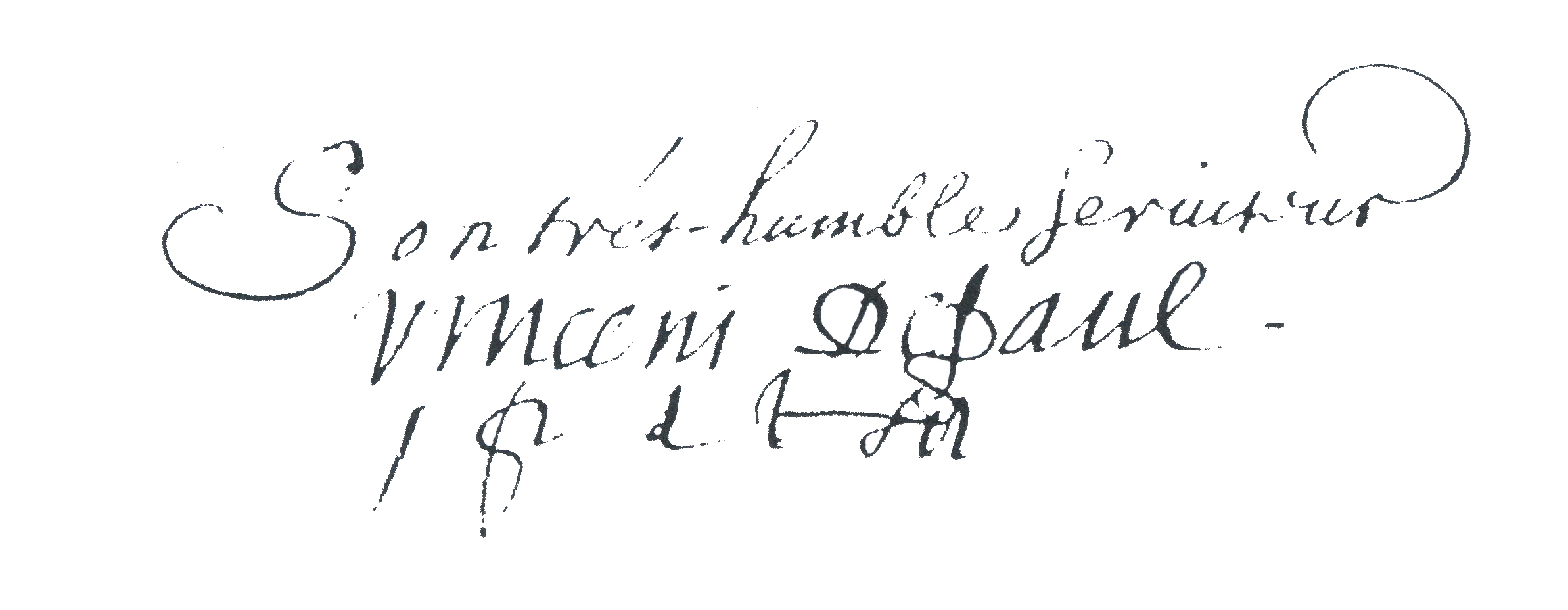 "His very humble servant," signed with i.p.d.l.M., unworthy priest of the Mission