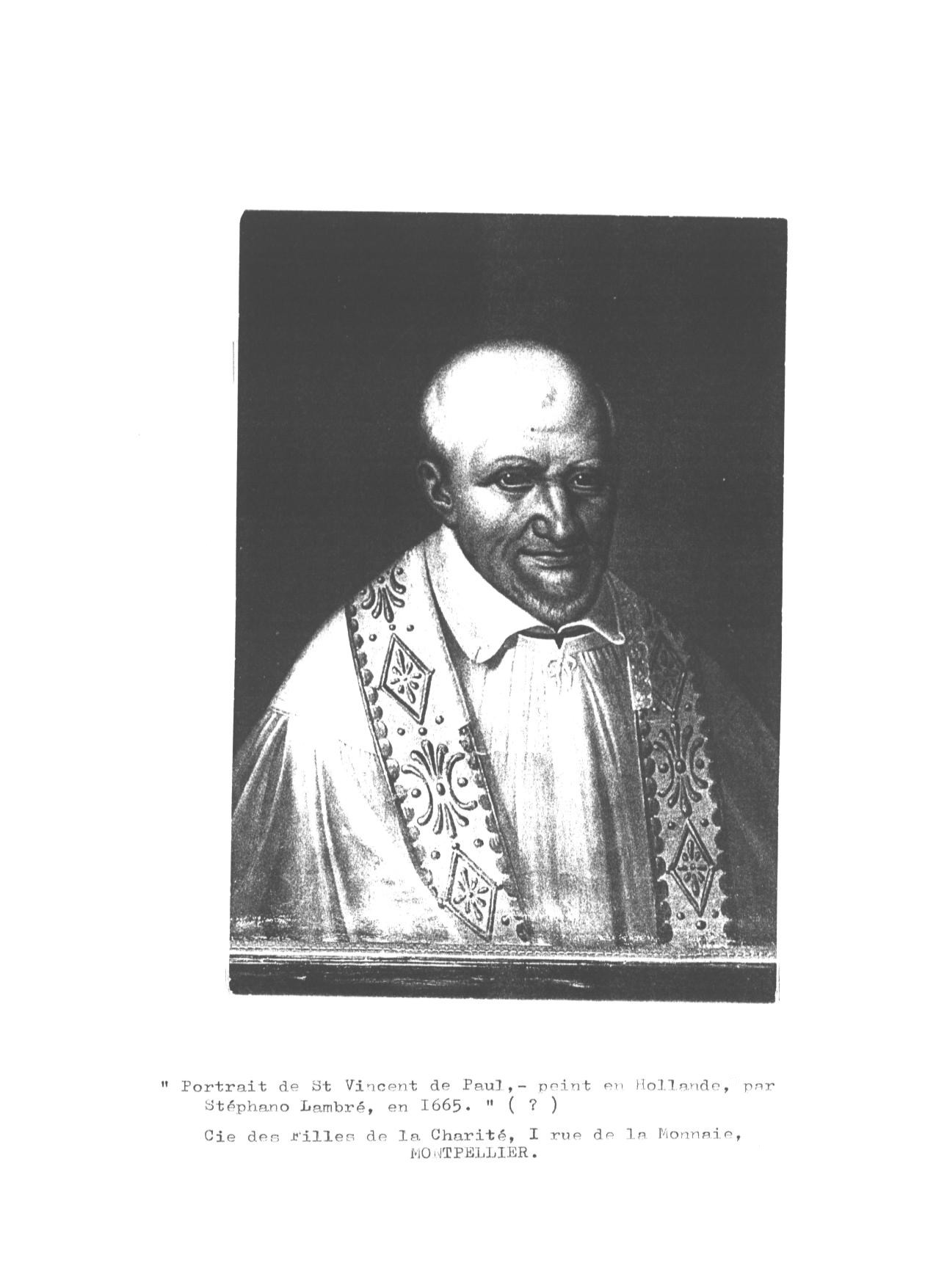Vincent de Paul, portrait by Lambré, 1665