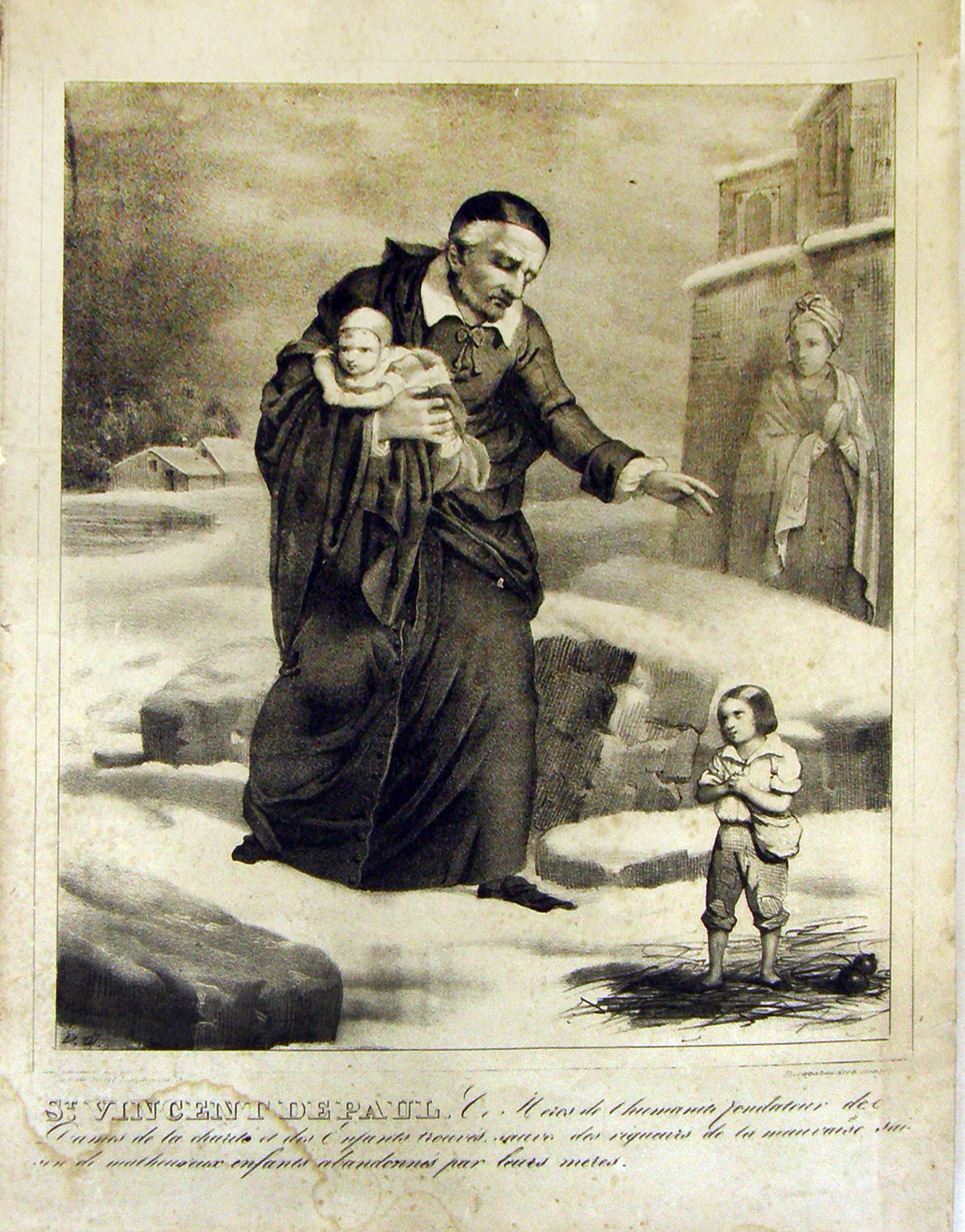 Version of Monsiau painting; mother in background; snow; original in CM archives, Paris