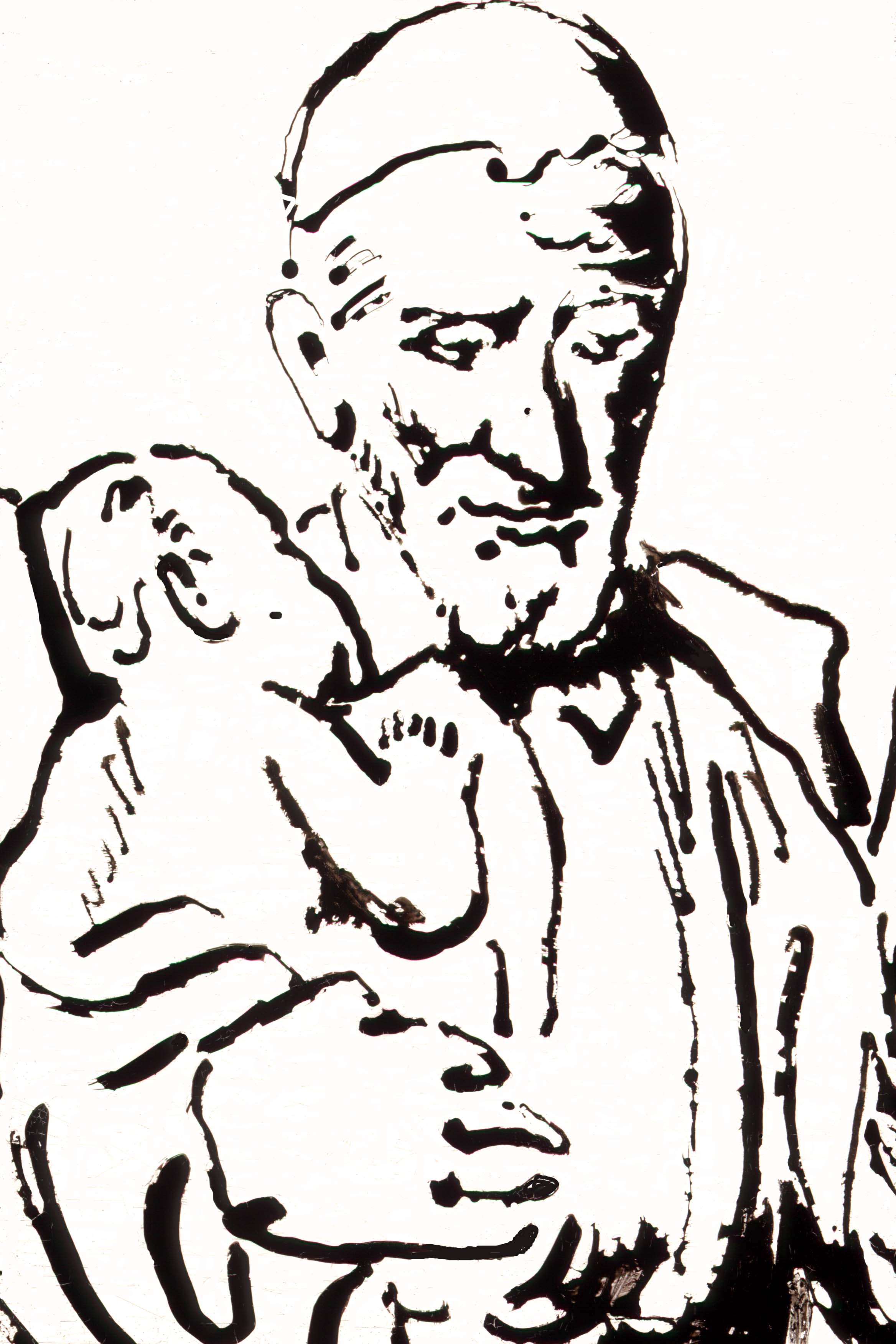 Vincent de Paul holding sleeping child, artist: Bascun