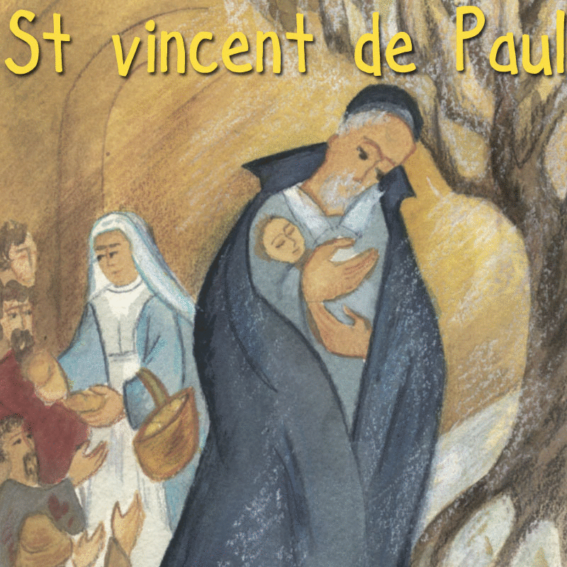 Vincent de Paul and Daughter of Charity, with poor