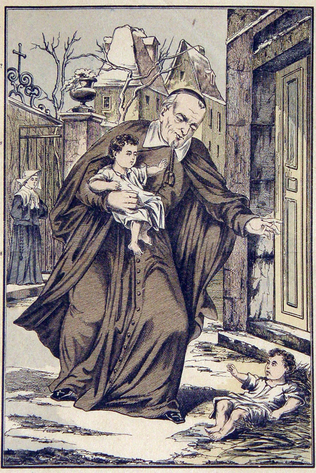 Vincent de Paul gathering foundlings, Daughter of Charity