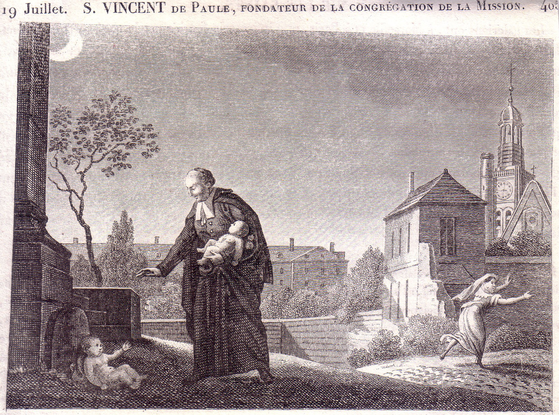 Vincent de Paul with clerical collar of diocesan clergy; not in winter; DePaul University collection