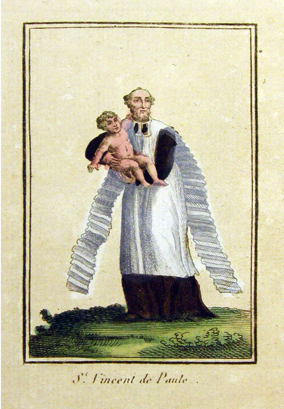 Hand-colored engraving; early 19th century; Paris surplice, diocesan collar; Original in archives, CM mother house, Paris
