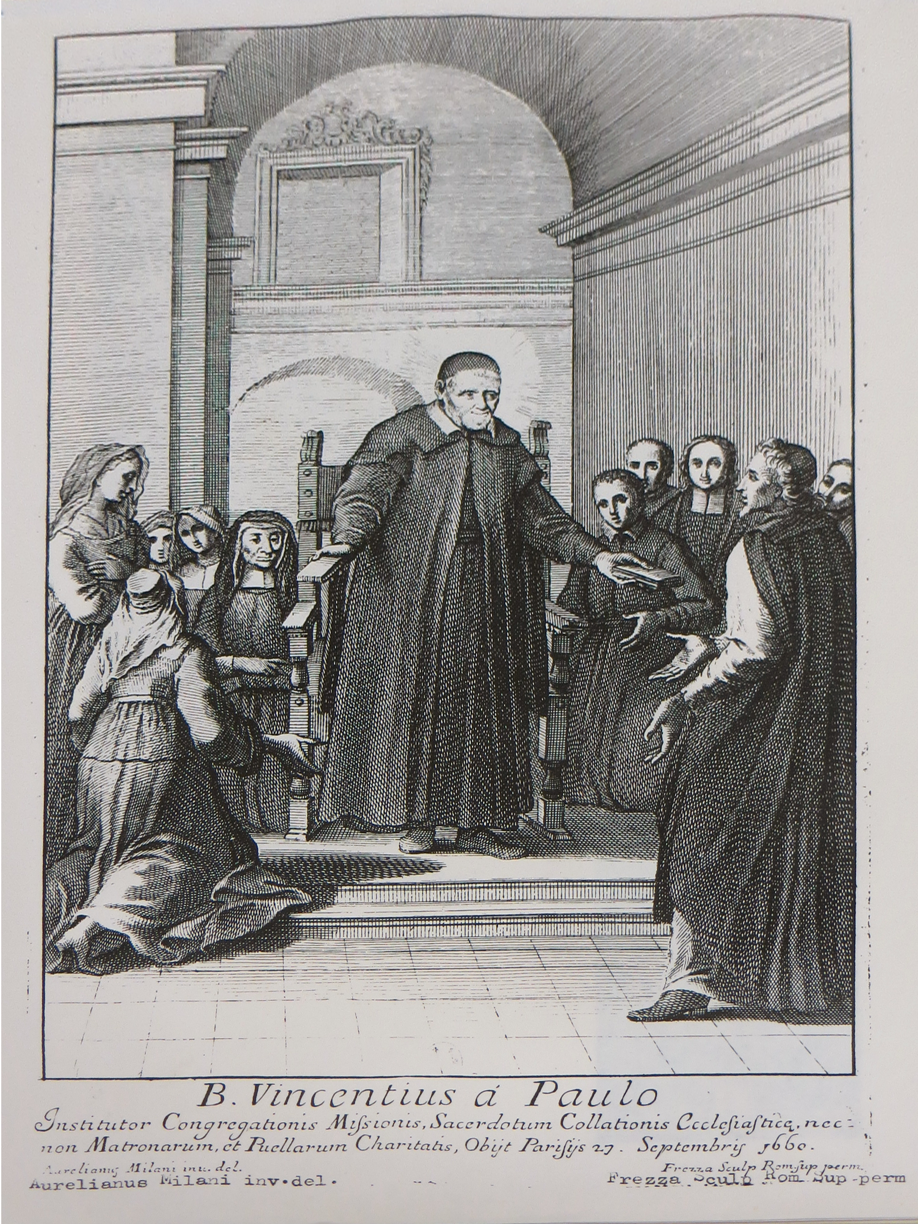 Chalumeau collection, Paris, Vincentian archives Italian; Latin text: Founder of the CM, the priests of the Ecclesiastical Conferences, and the Ladies and Daughters of Charity.