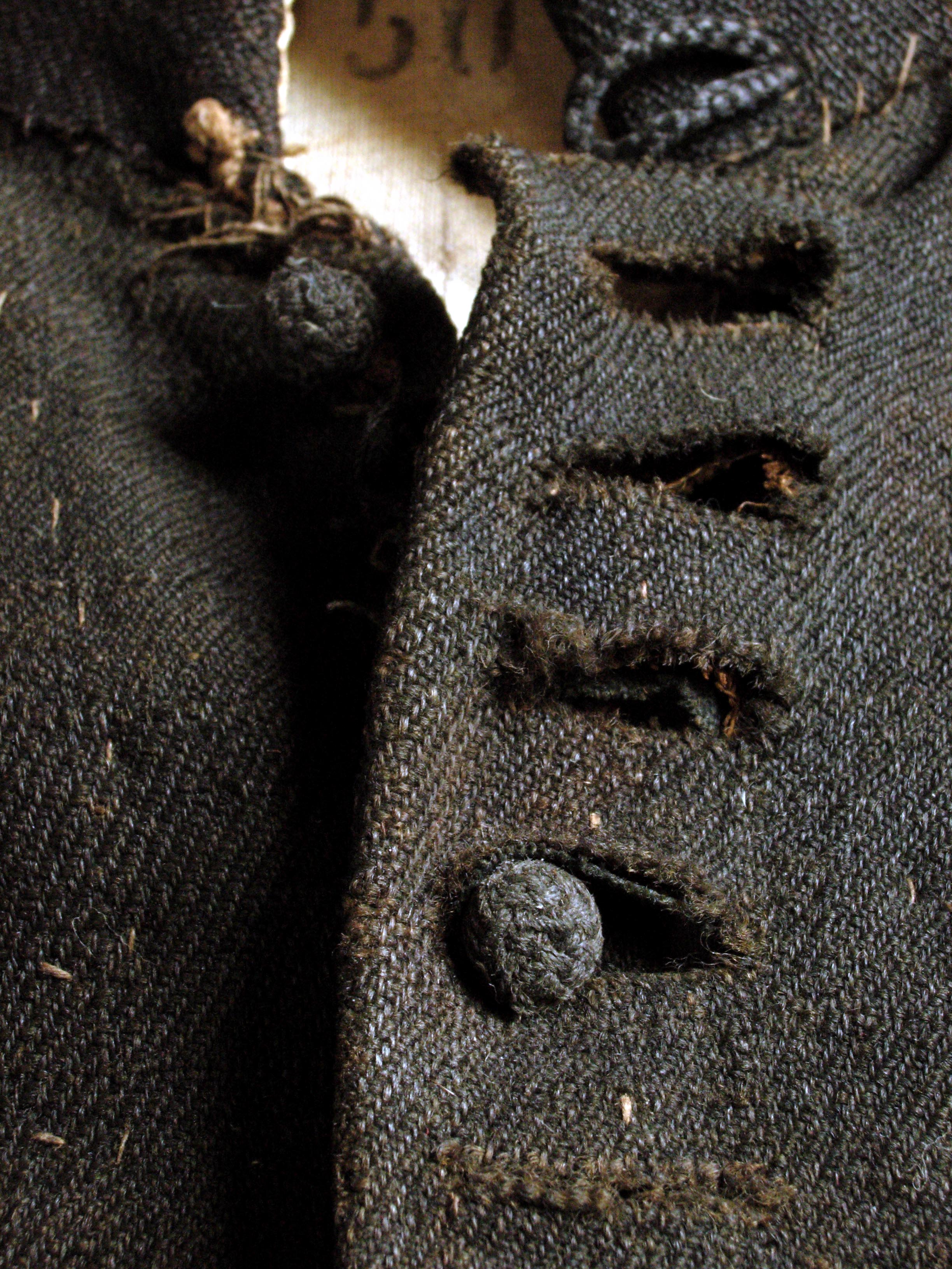 Details of cloth, button and buttonholes