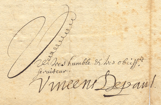 Signature only, Vincens Depaul; three strokes clearly seen in writing "Depaul" name