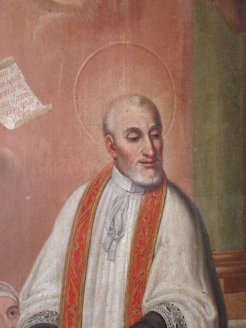 Detail of oil painting, Vincent de Paul distributes rules; original in Daughters of Charity provincial house, Zaragoza