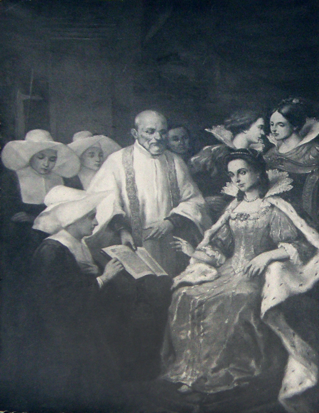 Vincent de Paul presenting the rules of the Daughters of Charity to Queen
