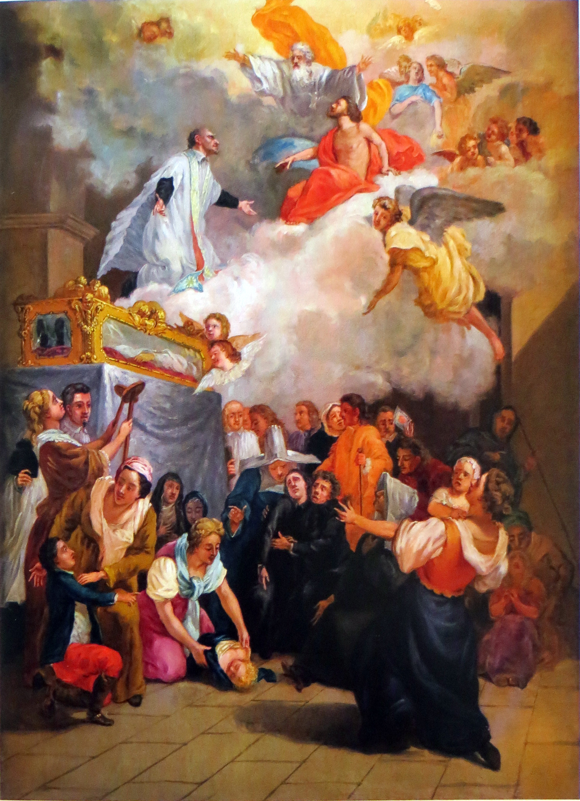 In CM mother house, Madrid; colorized version of canonization engraving (original painting now lost) Artist: Eduardo Nunez Peñasco, 1910; oil on canvas