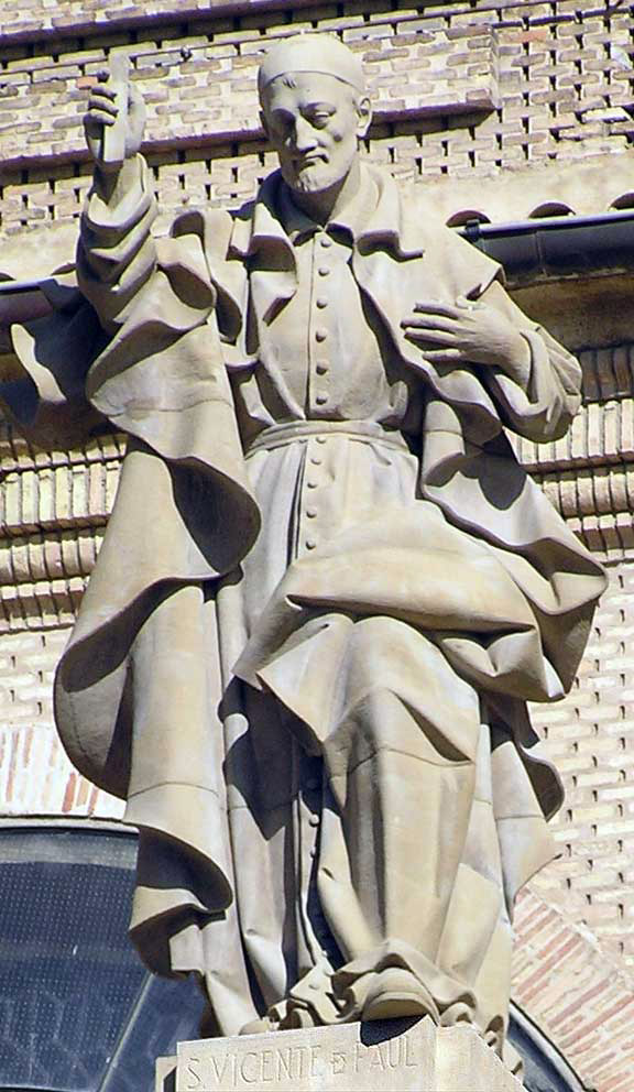 Vincent de Paul, preacher; on facade of Basilica of El Pilar; Internet image