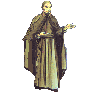 Vincent de Paul, standing or walking, in cassock, cincture, cape, skullcap; Spanish, otherwise unidentified