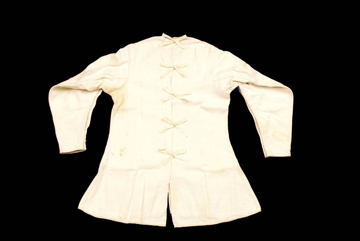 Tied at the back to facilitate easy dressing; shows little wear
